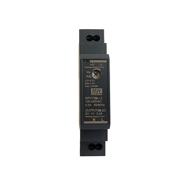 DIN šinski napajanje 12 W sa stabilizovanim izlazom 5 VDC i strujom do 2,4 A, pasivnim hlađenjem i jednim izlazom za pouzdane industrijske primene.