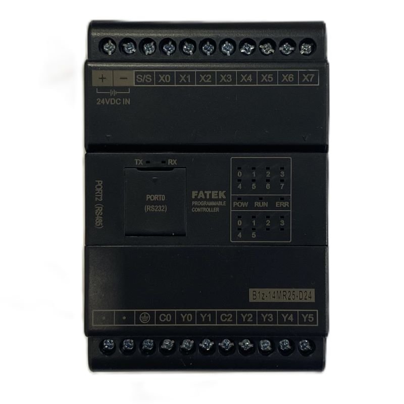 PLC FATEK B1z-14MR25-D24 sa 8 digitalnih ulaza 24VDC (4 tačke visokih frekvencija do 50KHz), 6 relejnih ili tranzistorskih izlaza i ugrađenim komunikacionim portom