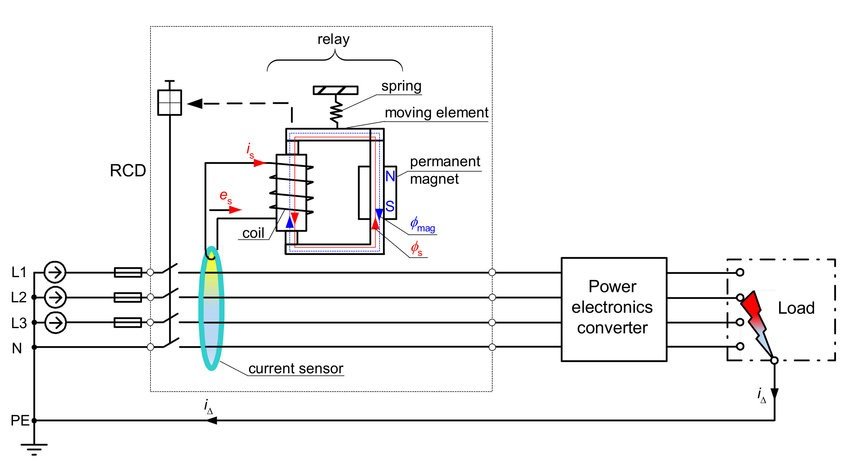 FID sklopka vrši konstantno merenje struje ulaznih faza preko integrisanog strujnog transformatora na svojim ulazima L1, L2, L3 za trofazne odnosno kroz L1 za monofazne modele koje teku ka potrošaču a ta ista struja vraća kroz neutralni provodnik N .