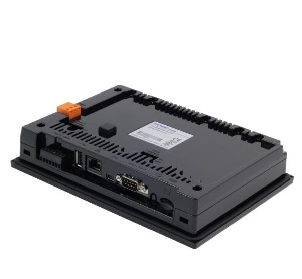 7“ HMI panel sa rezistivnim ekranom 800×480, Cortex-A8 procesorom, 128MB RAM-a i USB podrškom za štampač. IP65 prednja zaštita i pasivno hlađenje za industrijsku primenu bez Ethernet veze.