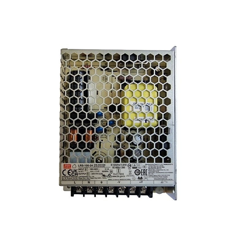 Napajanje u metalnom kućištu snage 108 W sa stabilizovanim izlazom 24 VDC i strujom do 4,5 A, pasivnim hlađenjem i jednim izlazom za pouzdano industrijsko napajanje.
