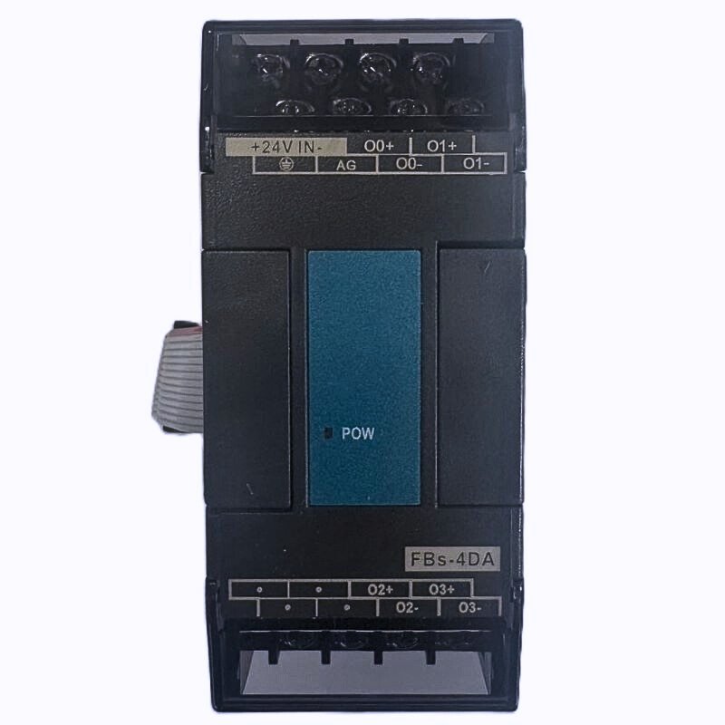 FATEK FBs-4DA je digitalno-analogni ekspanzioni modul sa 4 analogna izlaza i 14-bitnom rezolucijom. Podržava više naponskih i strujnih opsega izlaza (unipolarne i bipolarne), uz izolaciju putem transformatora i foto-kaplera. Modul se automatski resetuje na 0V/0mA ukoliko nema komunikacije sa CPU-om duže od 0,5 sekundi. Pogodan je za precizno upravljanje u industrijskim automatizacionim sistemima.
