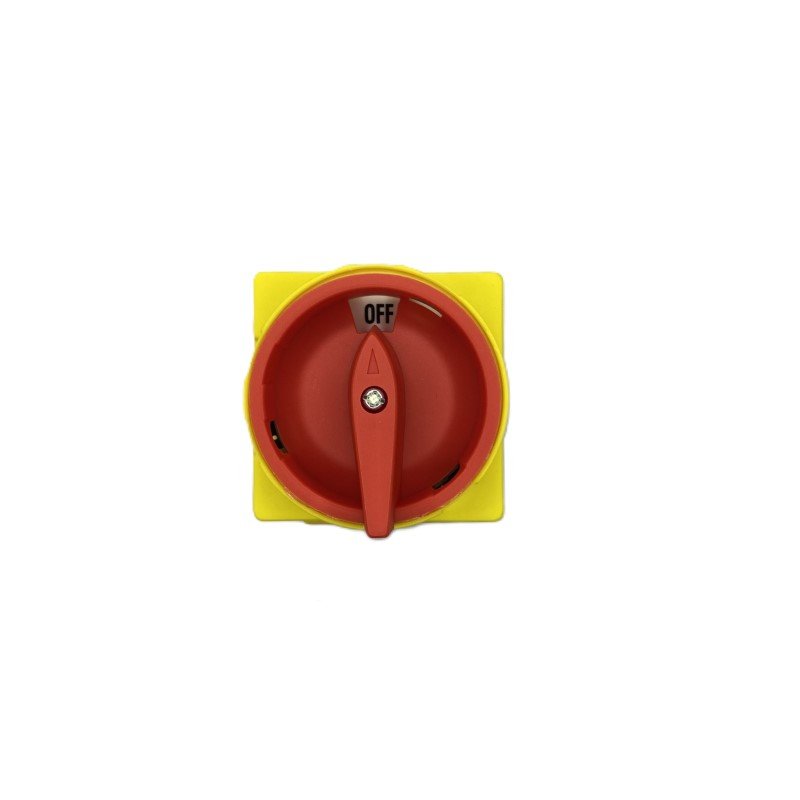 Auspicious PS63 crveni prekidač (80A, 600V) je rotacioni izolacioni prekidač visokog kapaciteta , 3-polni, dimenzija 64×64 mm, sa UL, TUV, CE i CSA sertifikatima. Proizvođač: Auspicious, Tajvan.