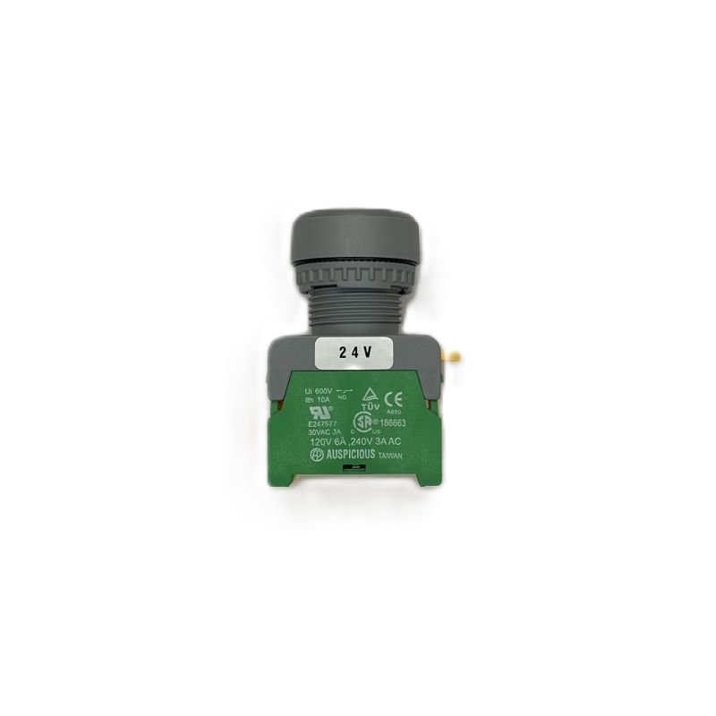 Auspicious LXB22 svetleći žuti taster (24V) je momentni industrijski taster sa LED osvetljenjem,  dizajniran za upravljanje i signalizaciju u kontrolnim i industrijskim sistemima.